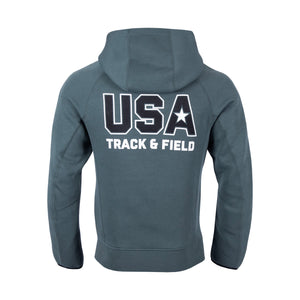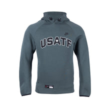 Nike USATF Men's Sportswear Tech Fleece Pullover Hoodie in gray color with 'USATF' text on the front.