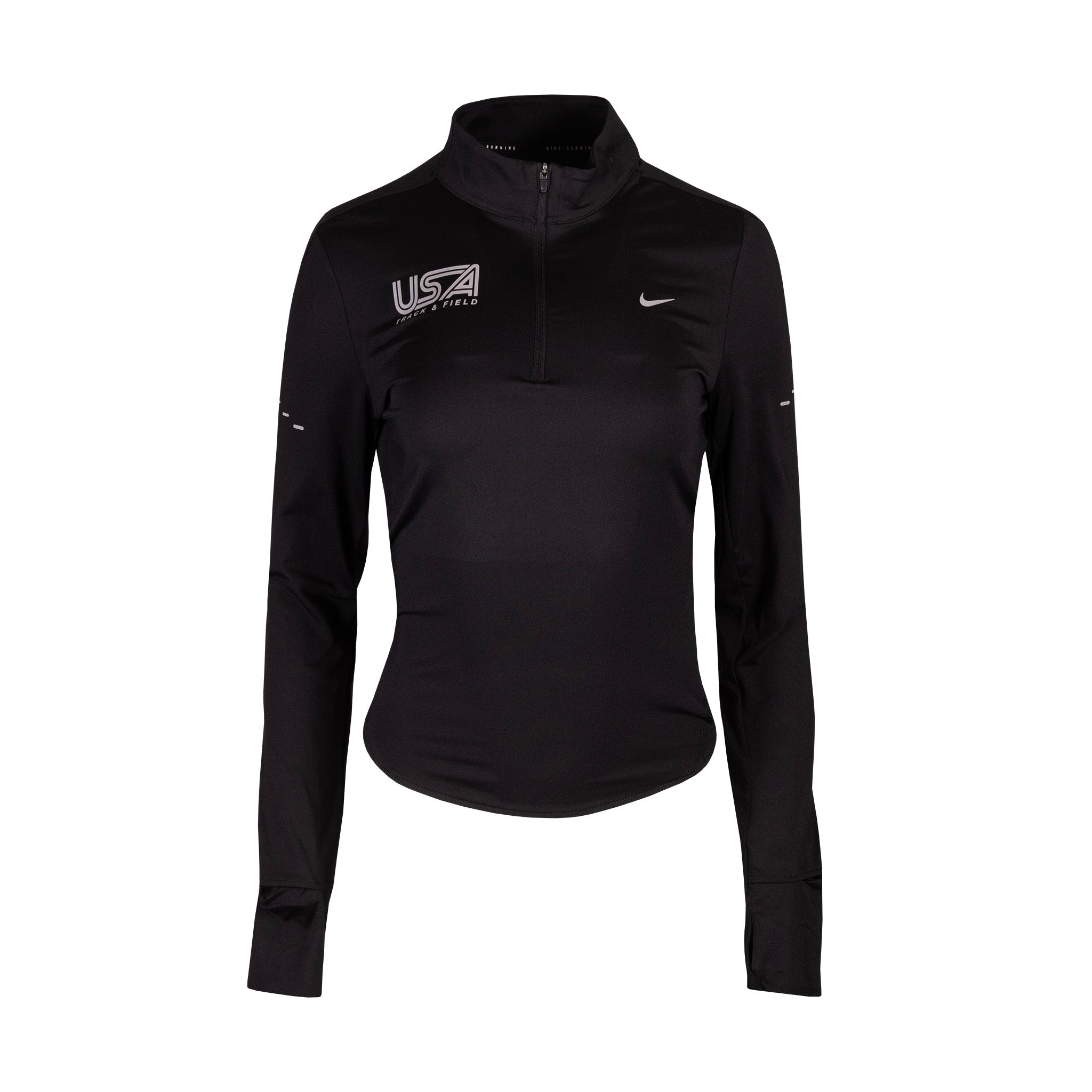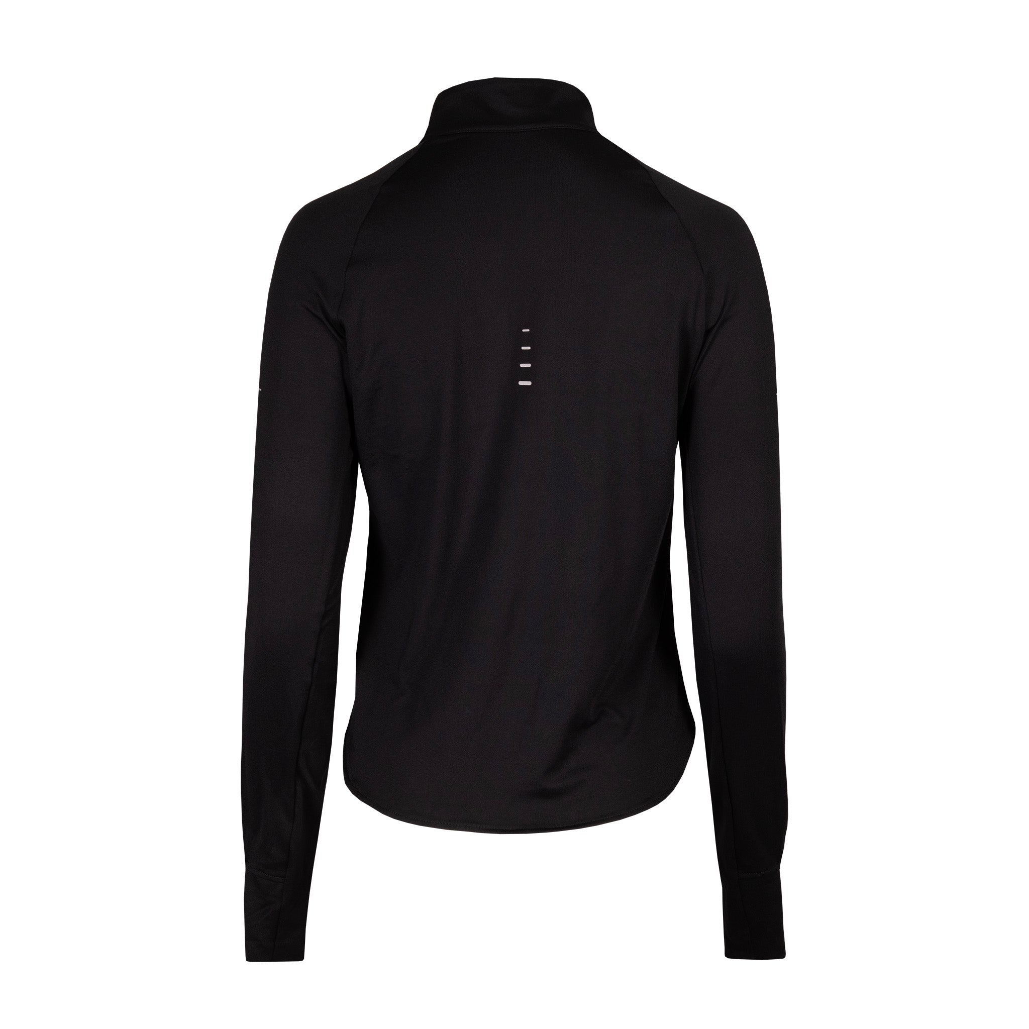 The top is tapered around the waist so that layering with other pieces is easier. A curved hem helps keep you covered through your stride. Plus, thumbholes let you extend your coverage and help hold the sleeves in place.